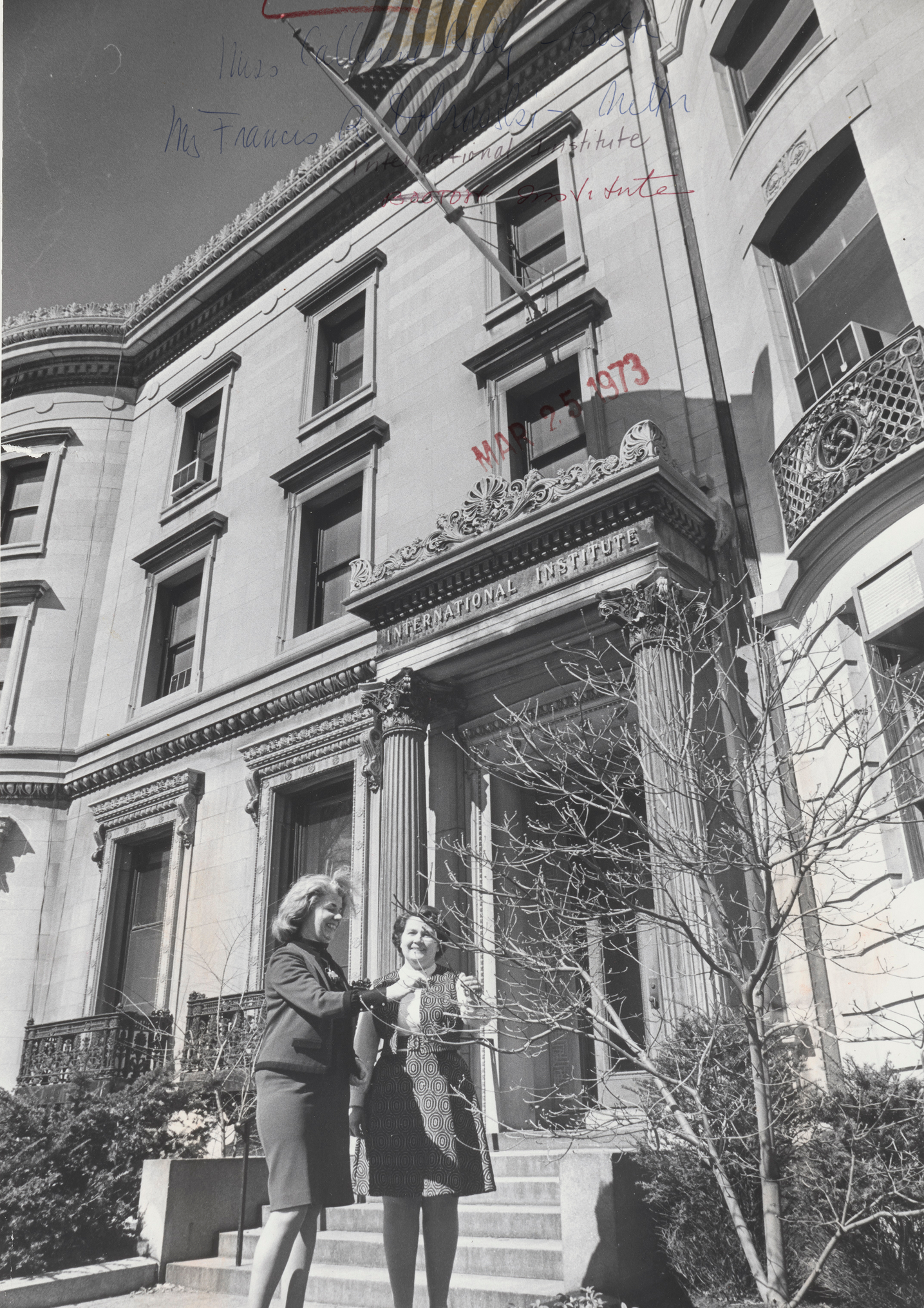 Founded in 1914 by YWCA volunteer Alfrieda Mosher, the International Institute of Boston (IIB) began with weekly open houses and clubs for immigrant women. In 1924, the Boston YWCA formally established the IIB at 12 Newbury Street. It celebrated immigrant cultures through clubs, performances, and art shows, offering language classes and bilingual services. In 1935, the IIB became an independent organization serving non-Protestant groups and immigrant men and boys.